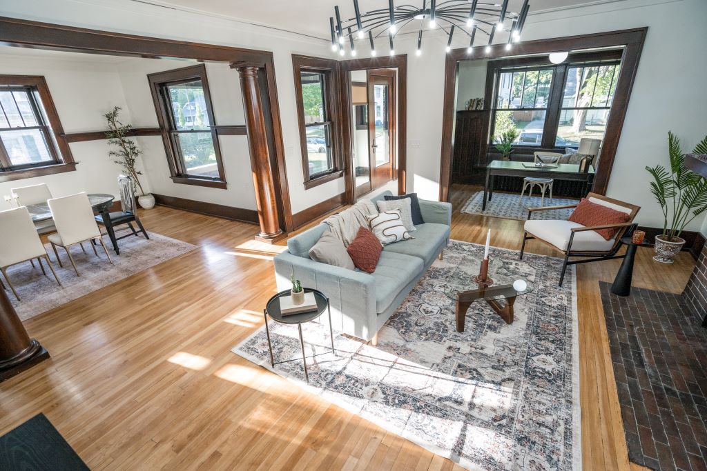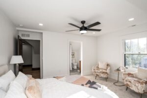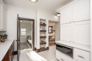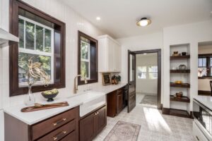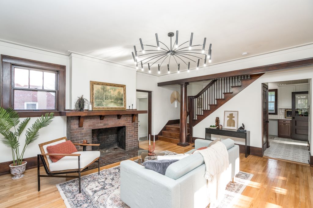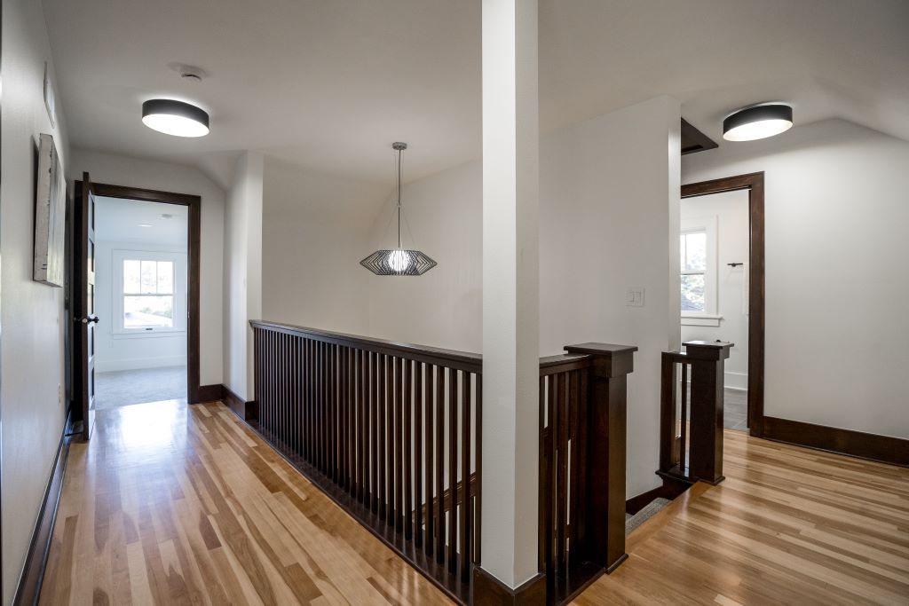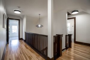 Sequel designed this whole-house rehabilitation from the basement up to celebrate its original character… while also fixing all the “infrastructure” issues caused by water damage and prior modifications. We completely re-structured the second floor to open up the stairway and provide access to a sunroom without having to go through the bedroom!